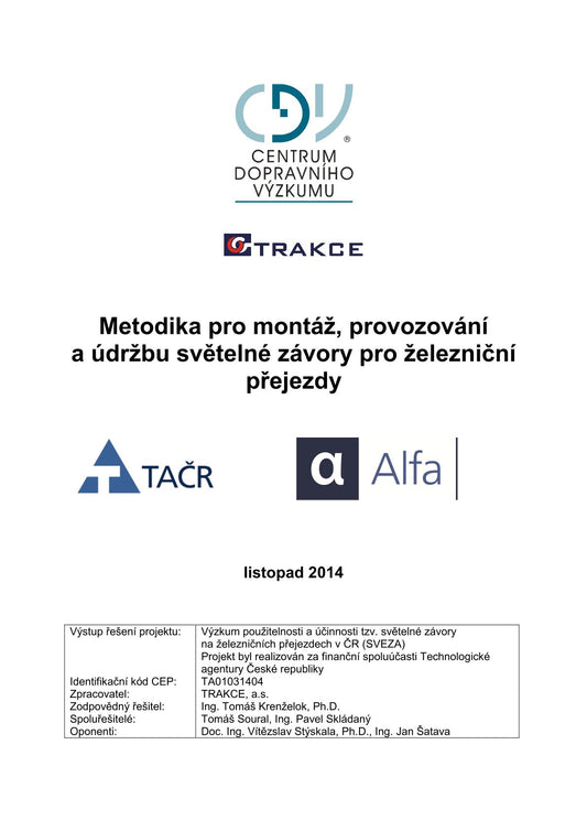 Metodika pro montáž, provozování a údržbu světelné závory pro železniční přejezdy