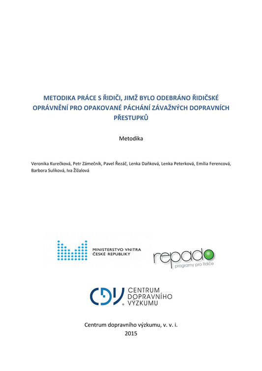 Metodika práce s řidiči, jimž bylo odebráno řidičské oprávnění pro opakované páchání závažných dopravních přestupků