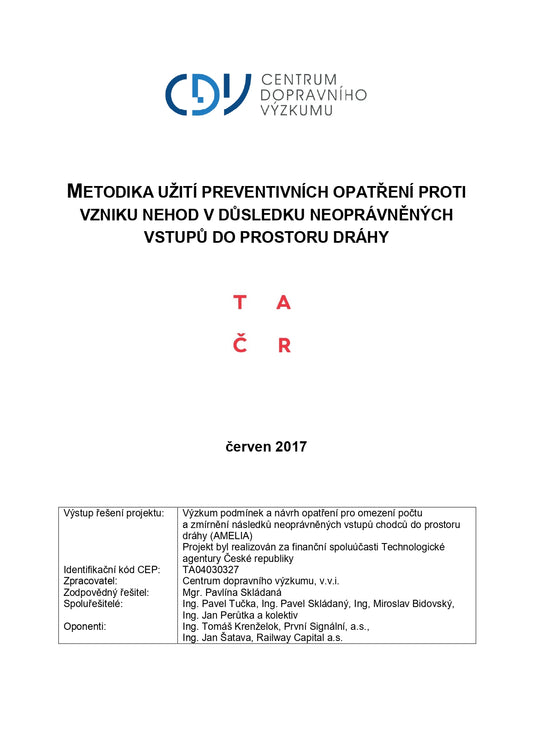 Metodika užití preventivních opatření proti vzniku nehod v důsledku neoprávněných vstupů do prostoru dráhy