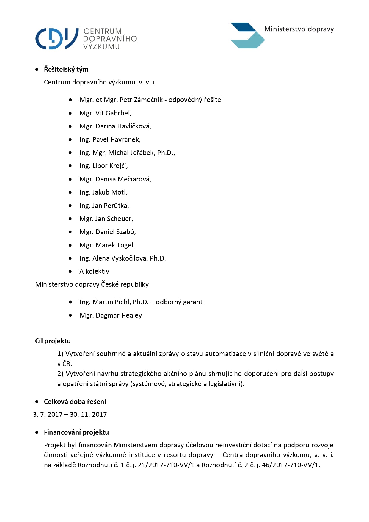 Autonomní vozidla v ČR – dopad na infrastrukturu, mobilitu, bezpečnost a společnost