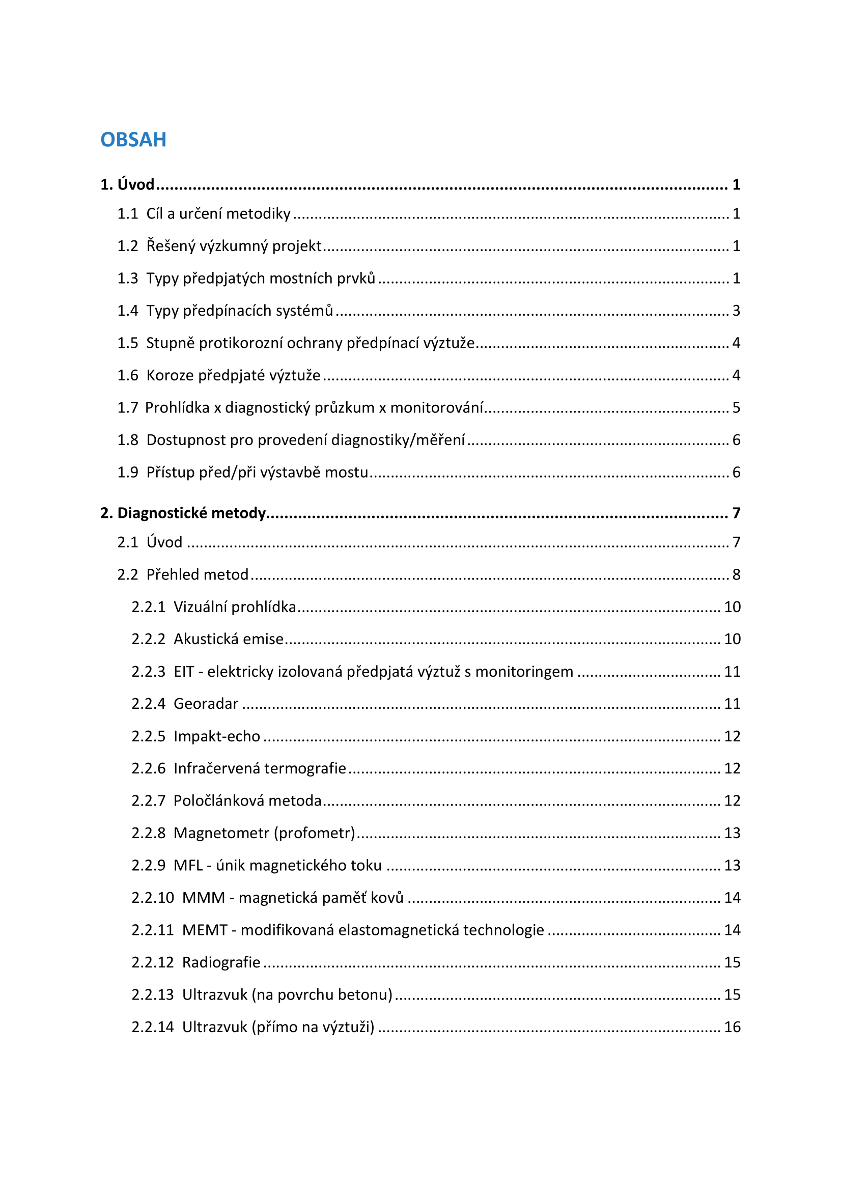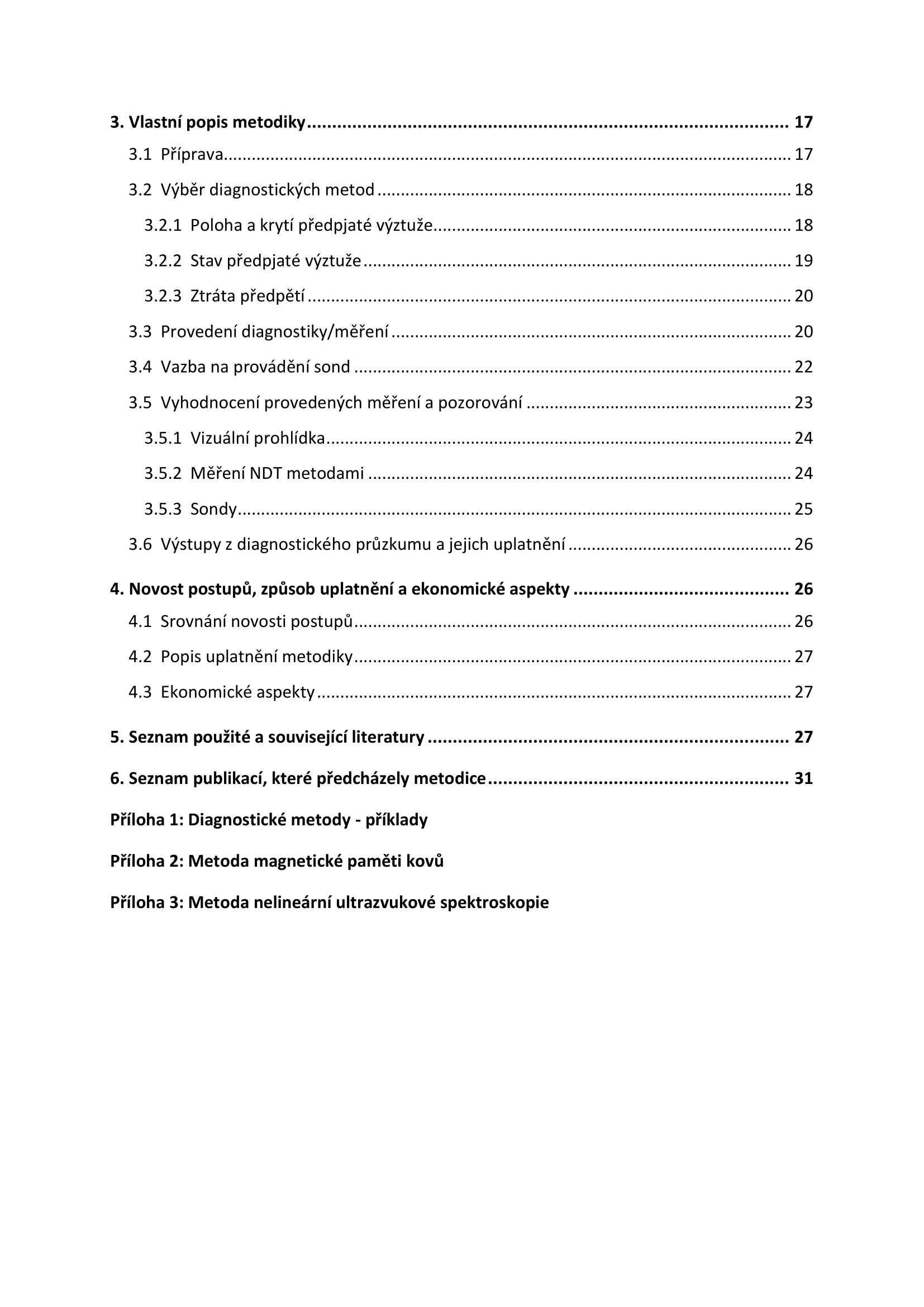 Metodika upřesňuje jak provádět podrobný diagnostický průzkum zaměřený na stav předpínací výztuže osazené a předepnuté v mostních objektech. Uvádí, co všechno by měla tento diagnostický průzkum zahrnovat, jaké nedestruktivní diagnostické metody se k tomuto účelu dají využít, v čem se od sebe liší a pro jaké aplikace jsou nejvhodnější.