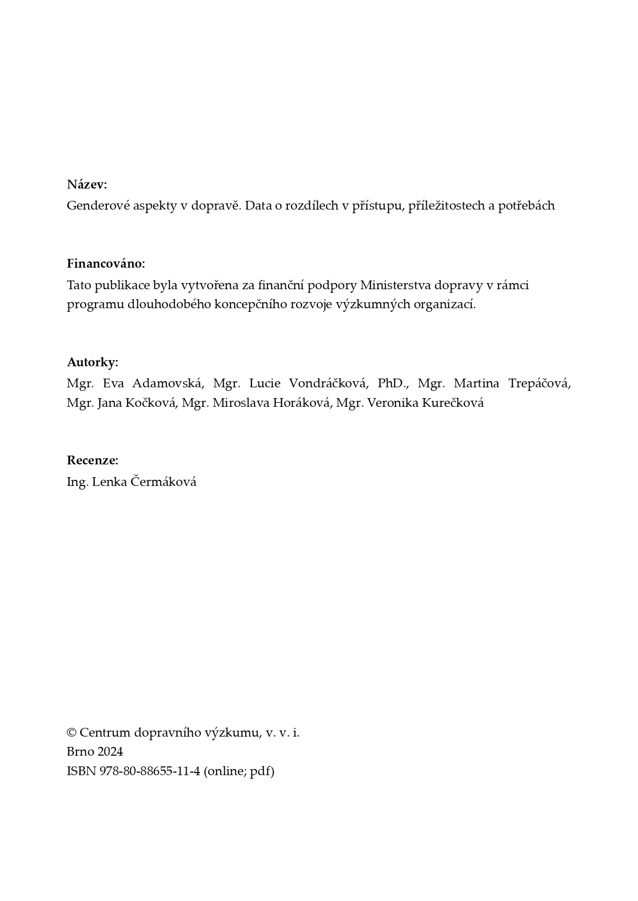 Genderové aspekty v dopravě. Data o rozdílech v přístupu, příležitostech a potřebách