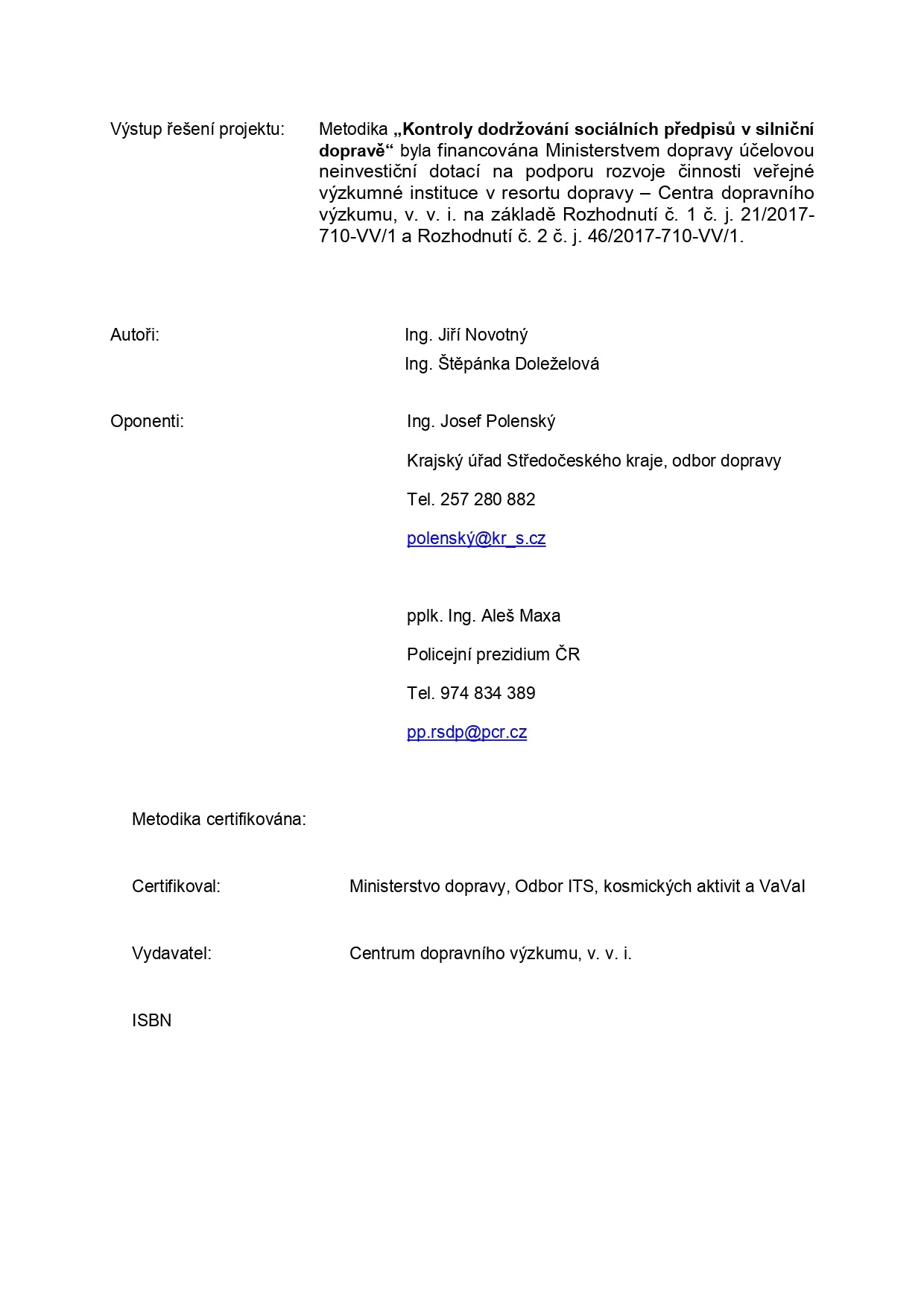 silničních, tak i kontrol v provozovnách dopravců. Tato metodika je především určena pro