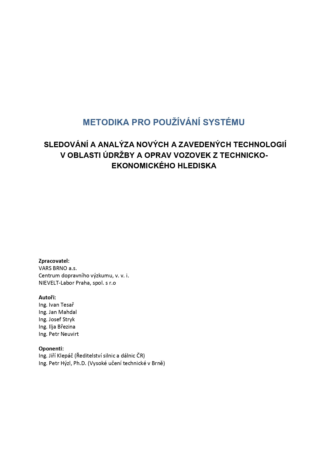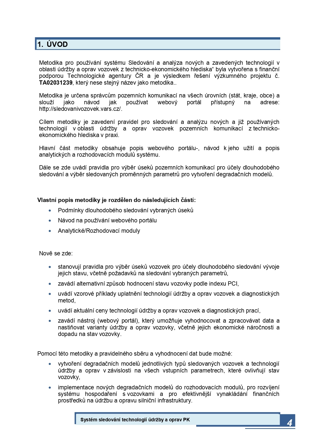 Metodika pro používání systému sledování a analýza nových a zavedených technologií v oblasti údržby a oprav vozovek z technicko-ekonomického hlediska