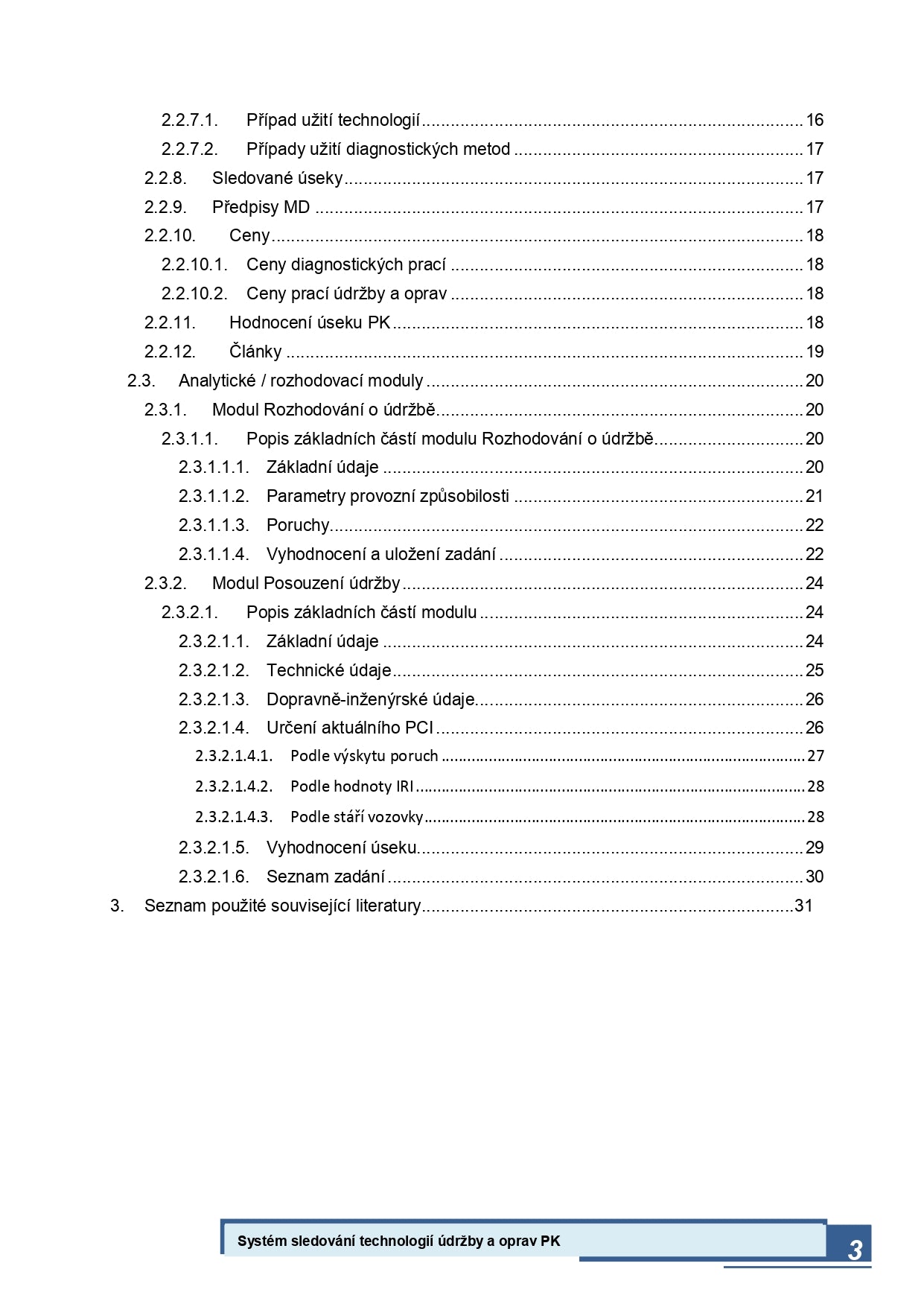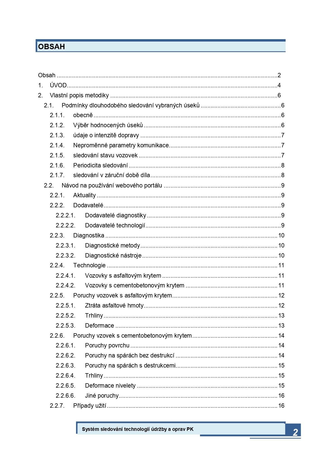 Hlavní část metodiky obsahuje popis webového portálu-, návod k jeho užití a popis analytických a rozhodovacích modulů systému. Dále se zde uvádí pravidla pro výběr úseků pozemních komunikací pro účely dlouhodobého sledování a výběr sledovaných proměnných parametrů pro vytvoření degradačních modelů