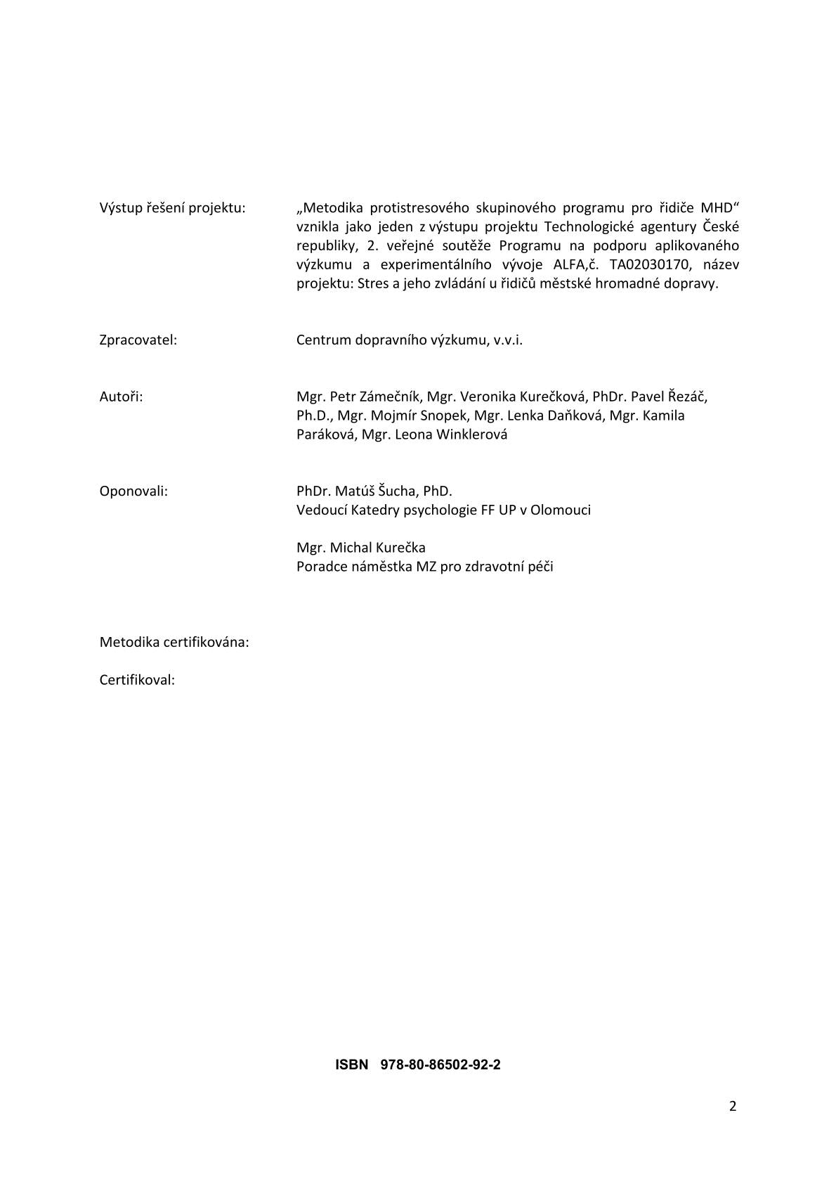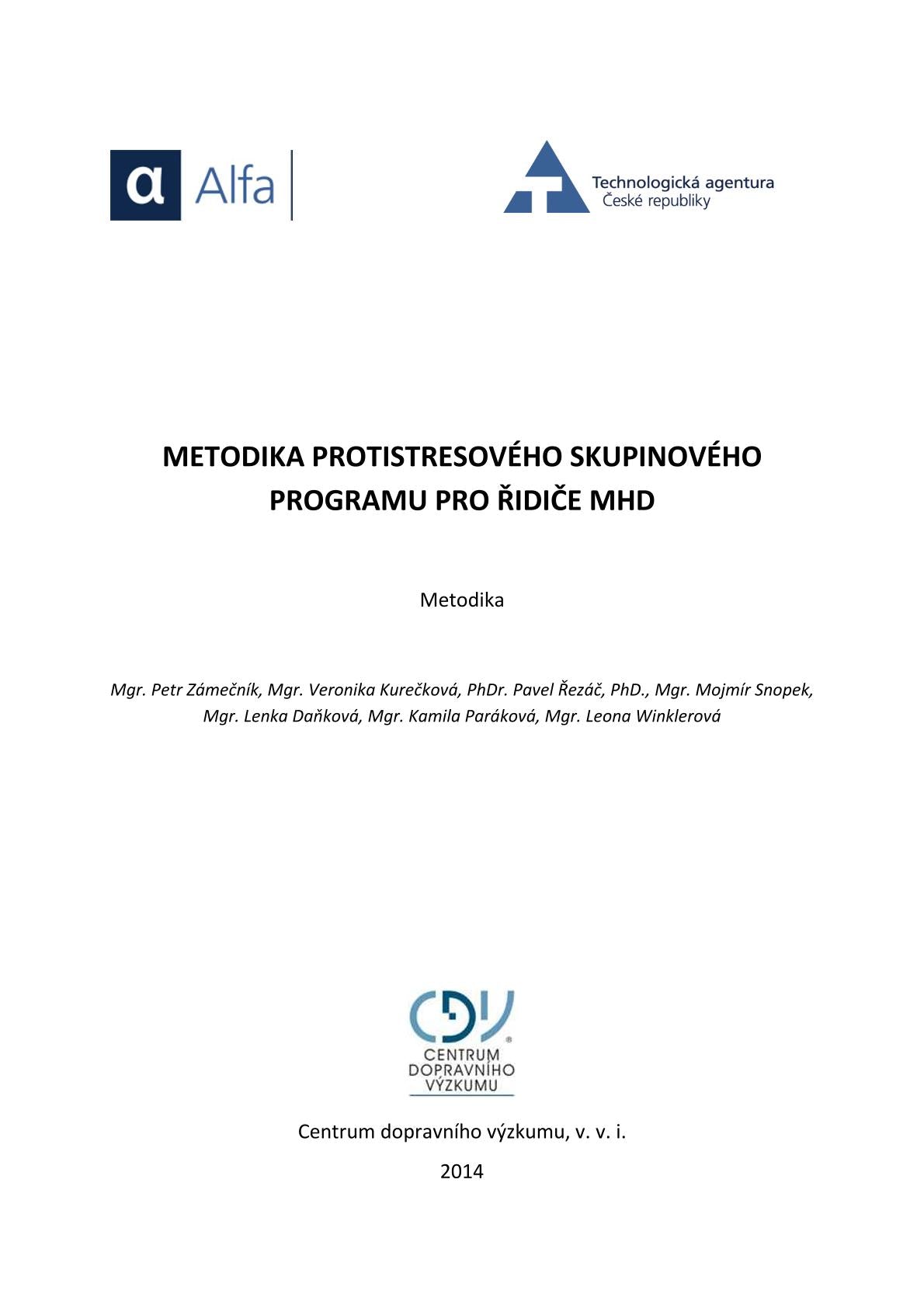 Tato metodika byla vytvořena se státní podporou Technologické agentury ČR v rámci Programu ALFA, v rámci řešení projektu TA02030170 Stres a jeho zvládání u řidičů městské hromadné dopravy.