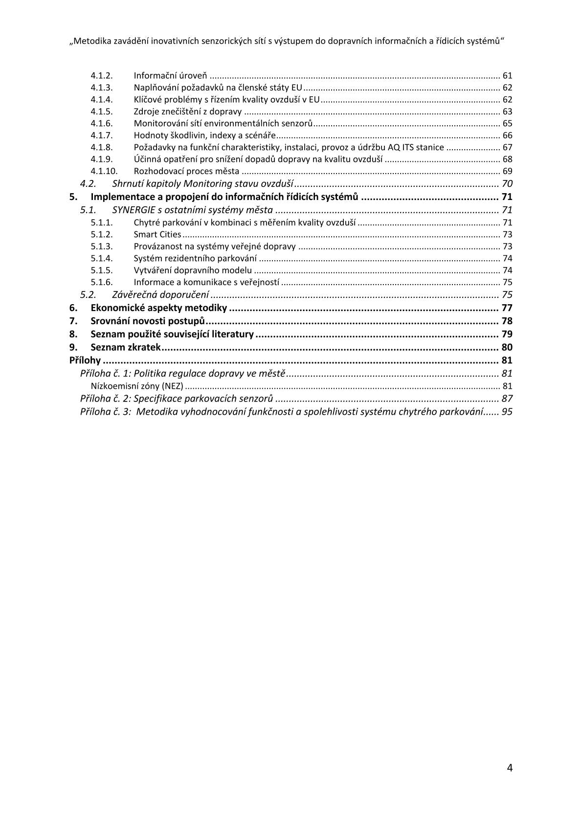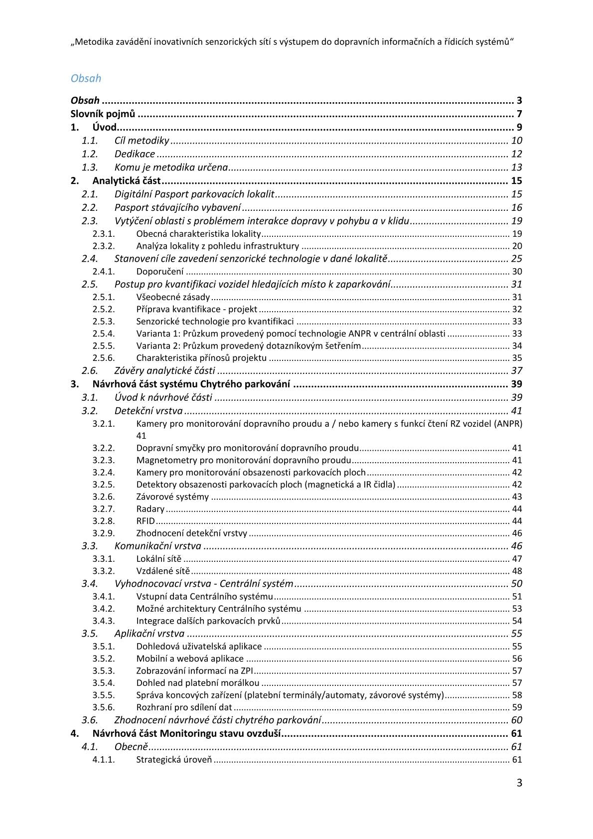 Cílem této metodiky je podat rámcový postup, jak zavádět inovativní senzorické sítě (především sítě detektorů monitorujících obsazenost parkovacích míst ve městech a sítě monitorovacích stanic pro měření kvality ovzduší), které mají výstup do dopravních informačních, dispečerských, popř. řídicích systémů.