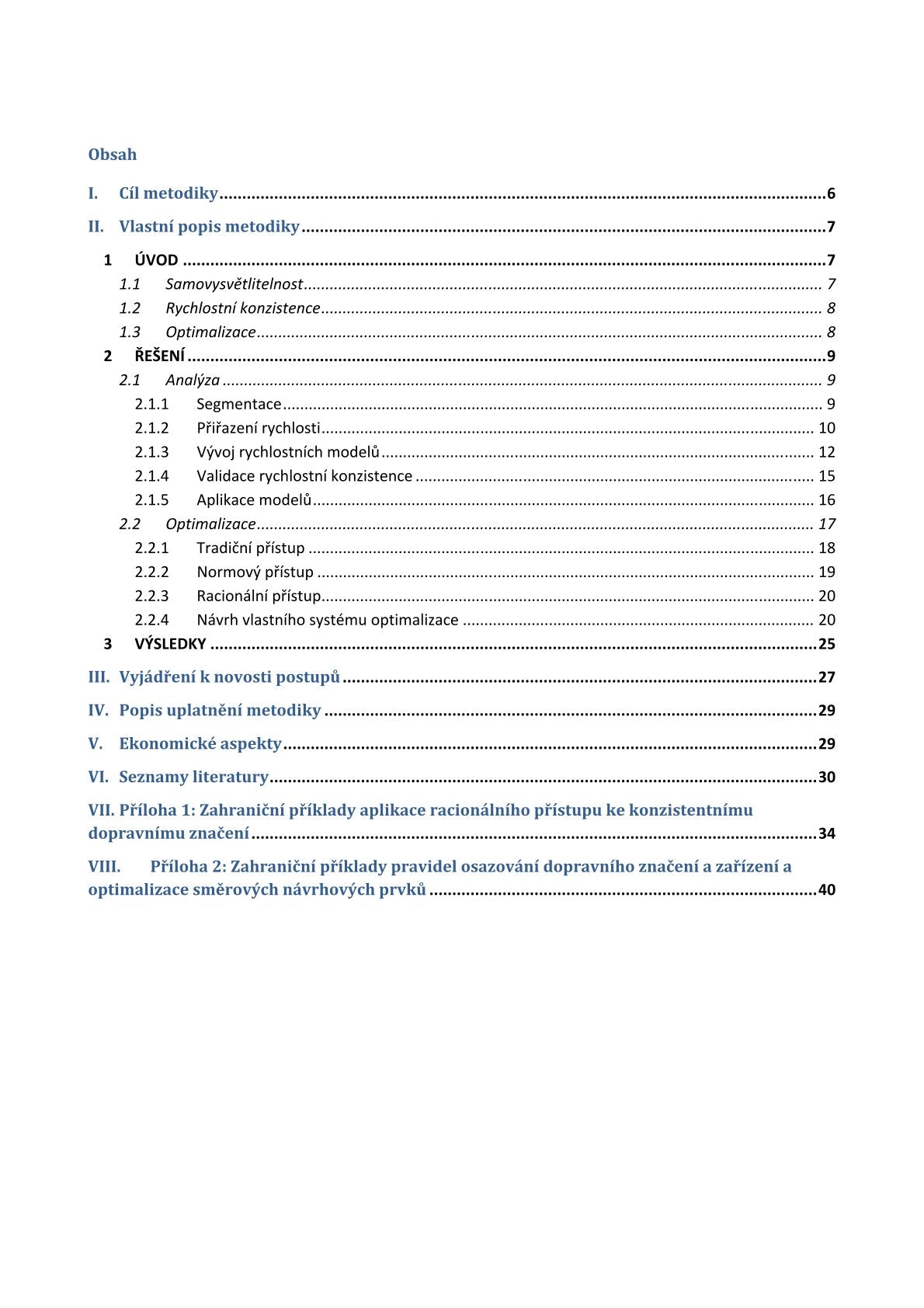 Metodika poskytuje návod a nástroje k praktickému hodnocení a následnému zvyšování samovysvětlitelnosti pozemních komunikací. K tomu byl využit koncept rychlostní konzistence (rozdílů rychlosti mezi přímými úseky a navazujícími směrovými oblouky) a z ní odvozené optimalizace (pomocí dopravního značení nebo změn směrového vedení).