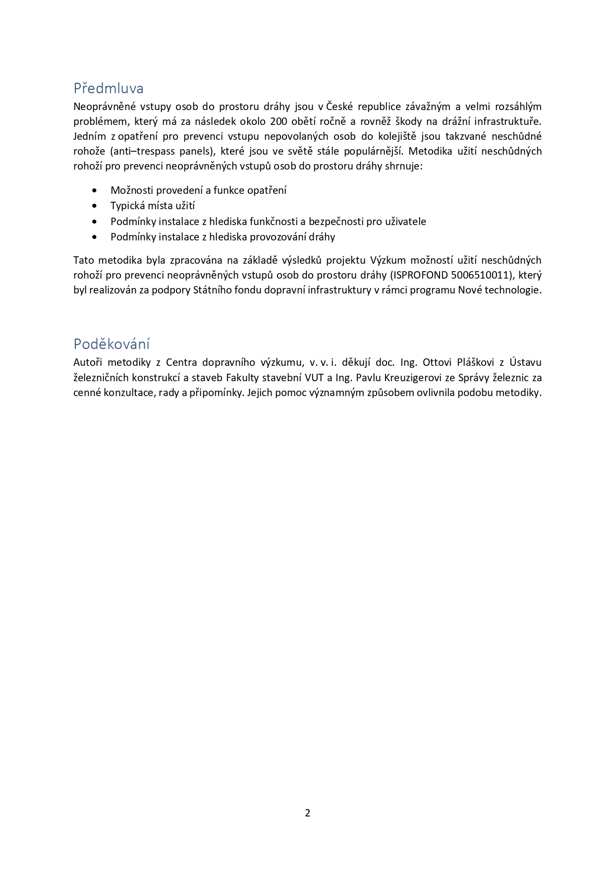 Tato metodika byla zpracována na základě výsledků projektu Výzkum možností užití neschůdných rohoží pro prevenci neoprávněných vstupů osob do prostoru dráhy (ISPROFOND 5006510011), který byl realizován za podpory Státního fondu dopravní infrastruktury v rámci programu Nové technologie.