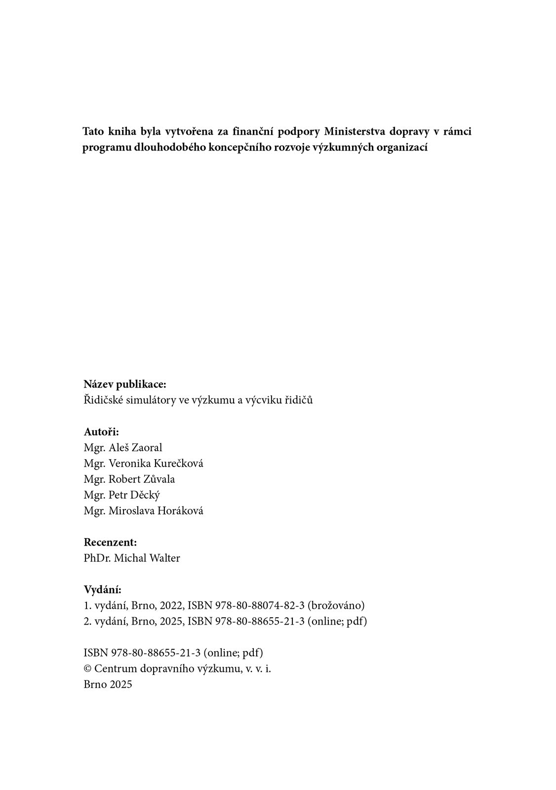 Předložená publikace obsahuje komplexní souhrn metod evaluace a analýzy řidičského chování za pomoci simulátoru.