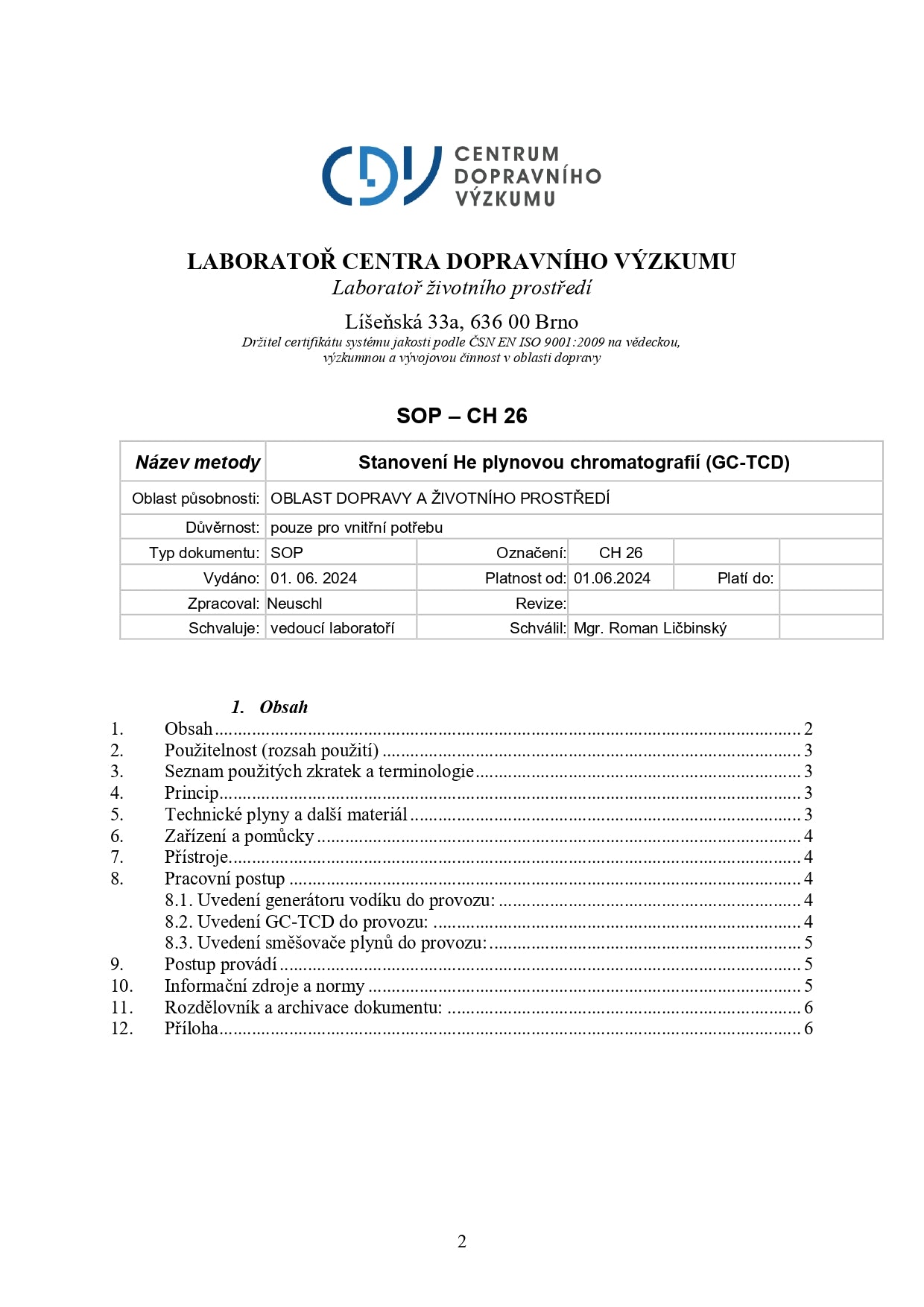 Metodický návod podrobně popisující postup práce při aplikaci analytické metody stanovení He ve vodíku. Postup byl vytvořen, zaveden a optimalizován na základě výzkumu analytických stanovení plynů ve vodíkové matrici s využitím plynové chromatografie v rámci výzkumné činnosti. Dále také aplikací normativních podkladů, odborných zpráv a manuálů k přístrojovému vybavení, které je v rámci této analytické metody použito. Správnost postupu byla ověřena witness auditem, který provedl odborný posuzovatel Českého institutu pro akreditaci. Analytická metoda stanovení He ve vodíku byla akreditačním orgánem akreditována.