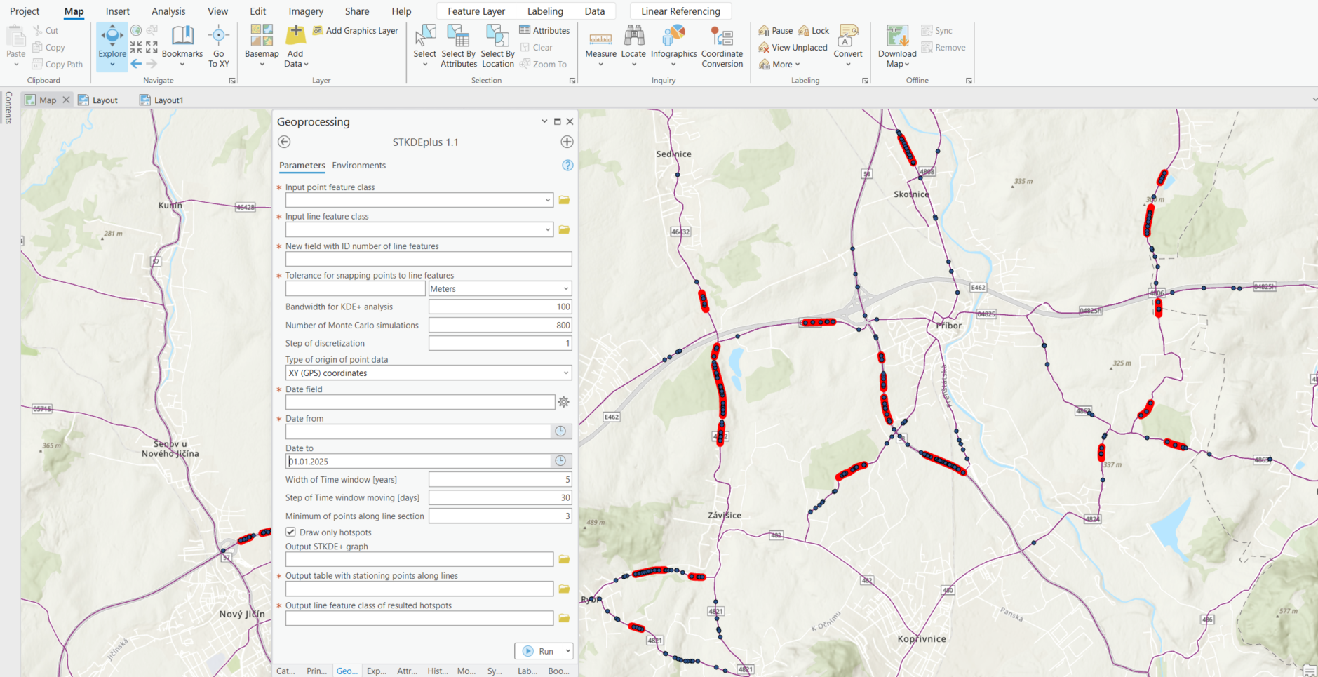 Umožňuje časovou analýzu hotspotů na dopravních sítích. Typickou aplikací je sledování časového vývoje kolizních míst pro hodnocení dopravně-bezpečnostních podmínek na silnicích v delším časovém období, včetně detekce problematických míst. Součástí produktu je nástroj pro ESRI ArcGIS Pro, soubor nápovědy a kontaktní informace pro podporu. Další informace o metodě, na níž je software založen, naleznete zde: www.kdeplus.cz/en/stmethod.