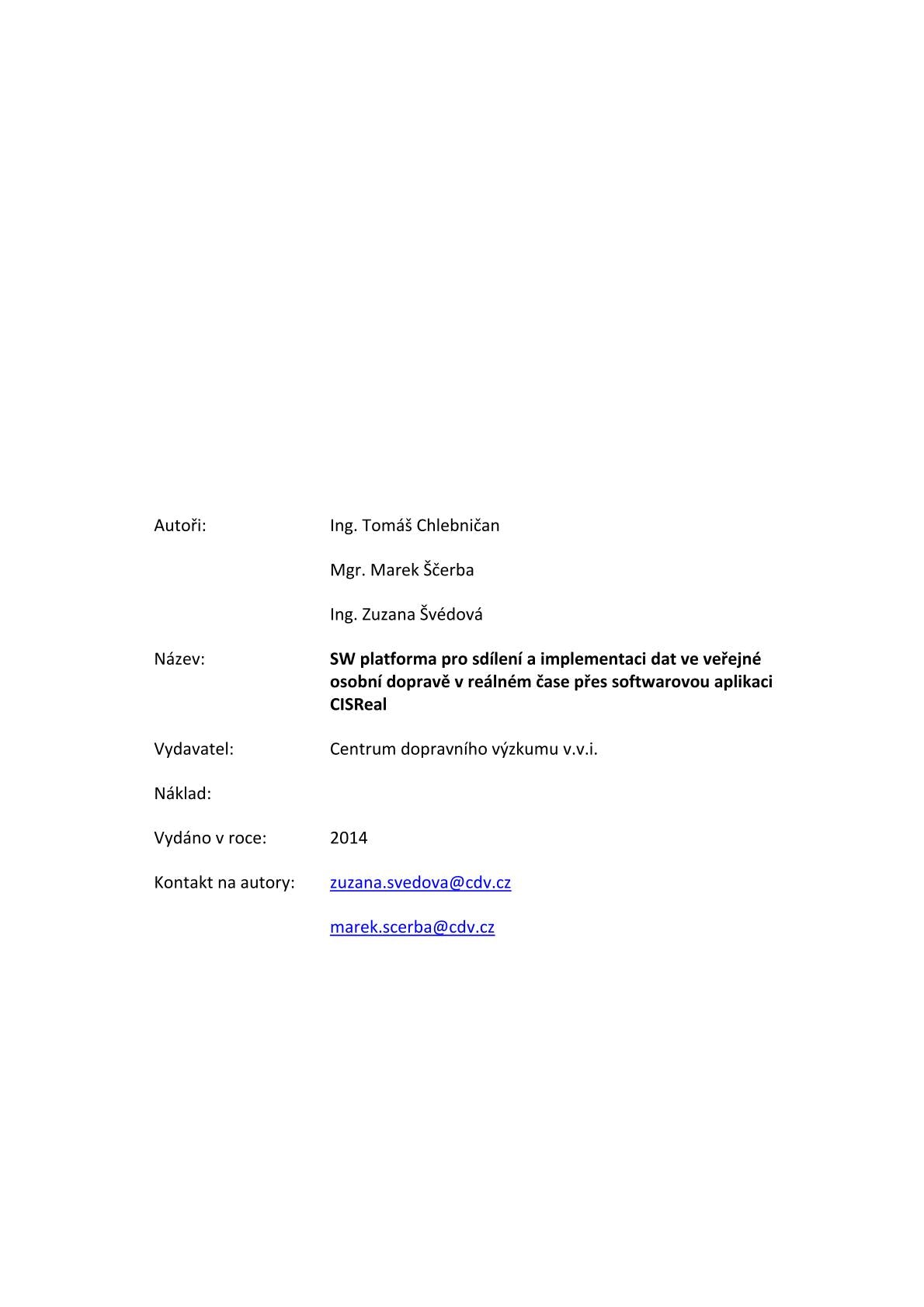 SW platforma pro sdílení implementaci dat ve veřejné osobní dopravě v reálném čase přes softwarovou aplikaci CISReal