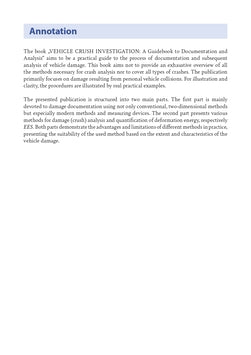 Kniha si klade za cíl být praktickým průvodcem procesem dokumentace a následné analýzy poškození vozidla po nehodě.