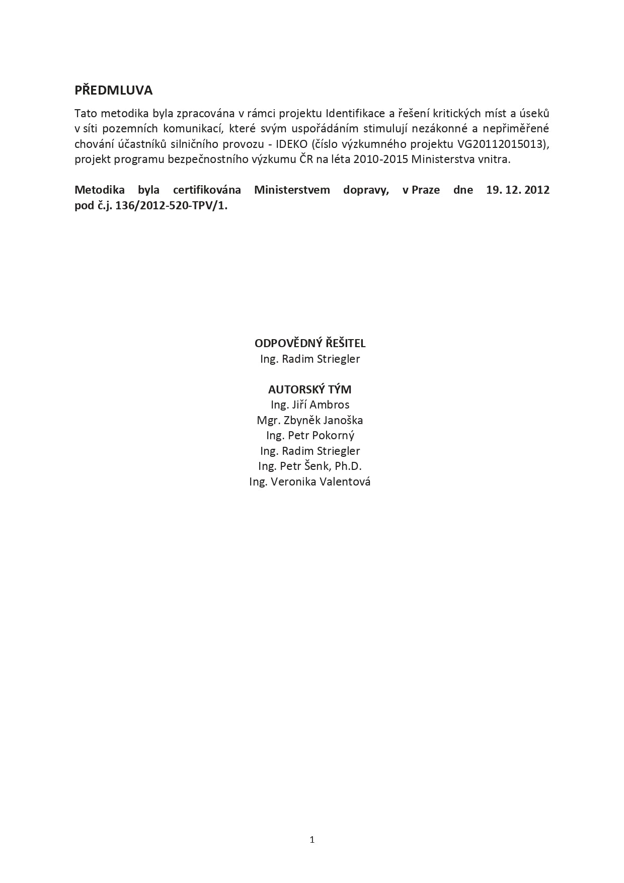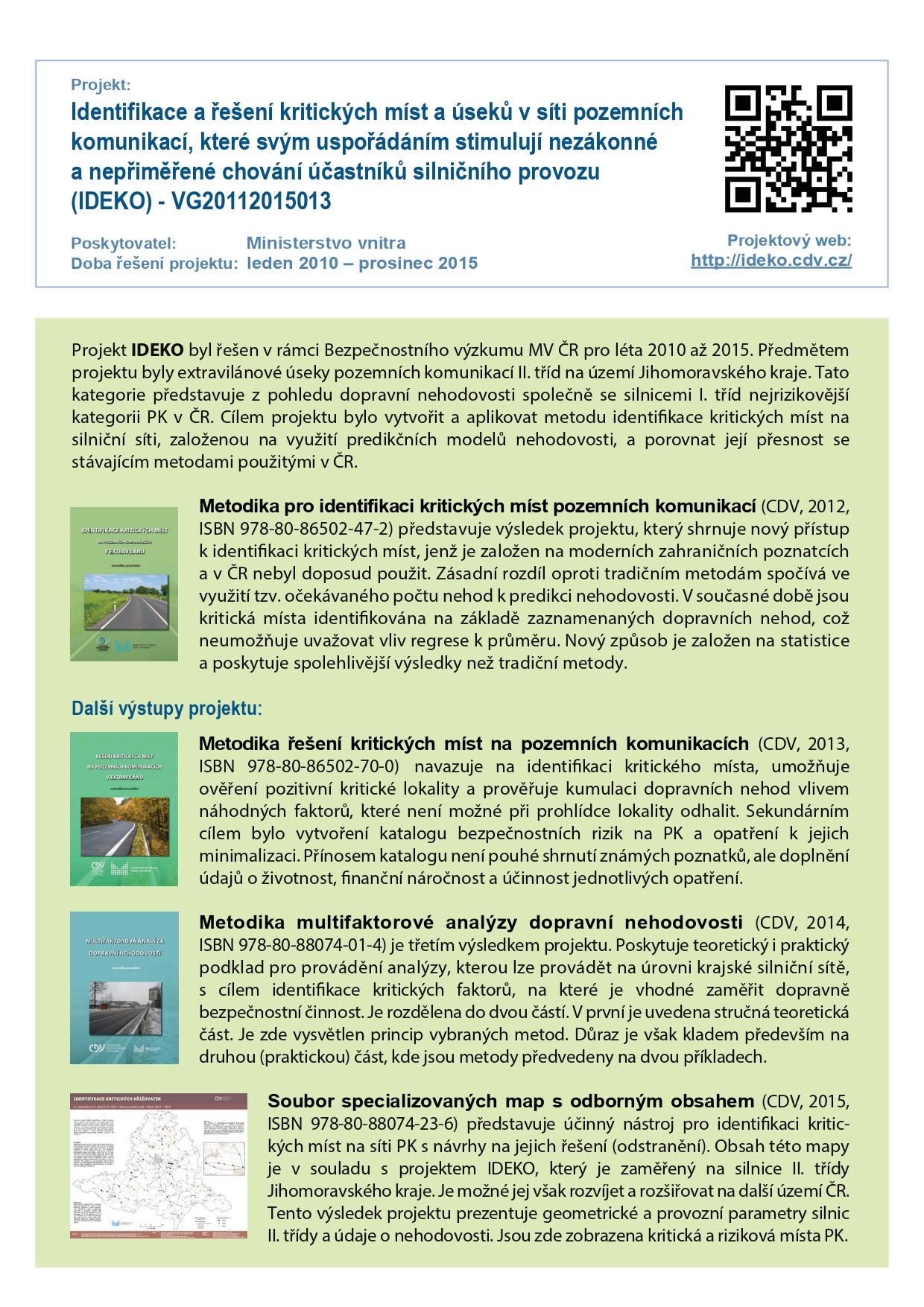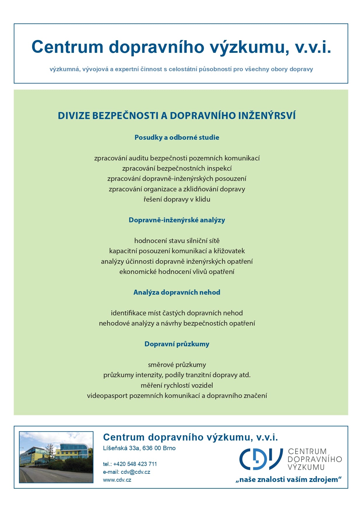 behavior of road users – IDEKO (research project number VG20112015013), a project of the safety research program of the Czech Republic for the years 2010–2015 of the Ministry of the Interior.