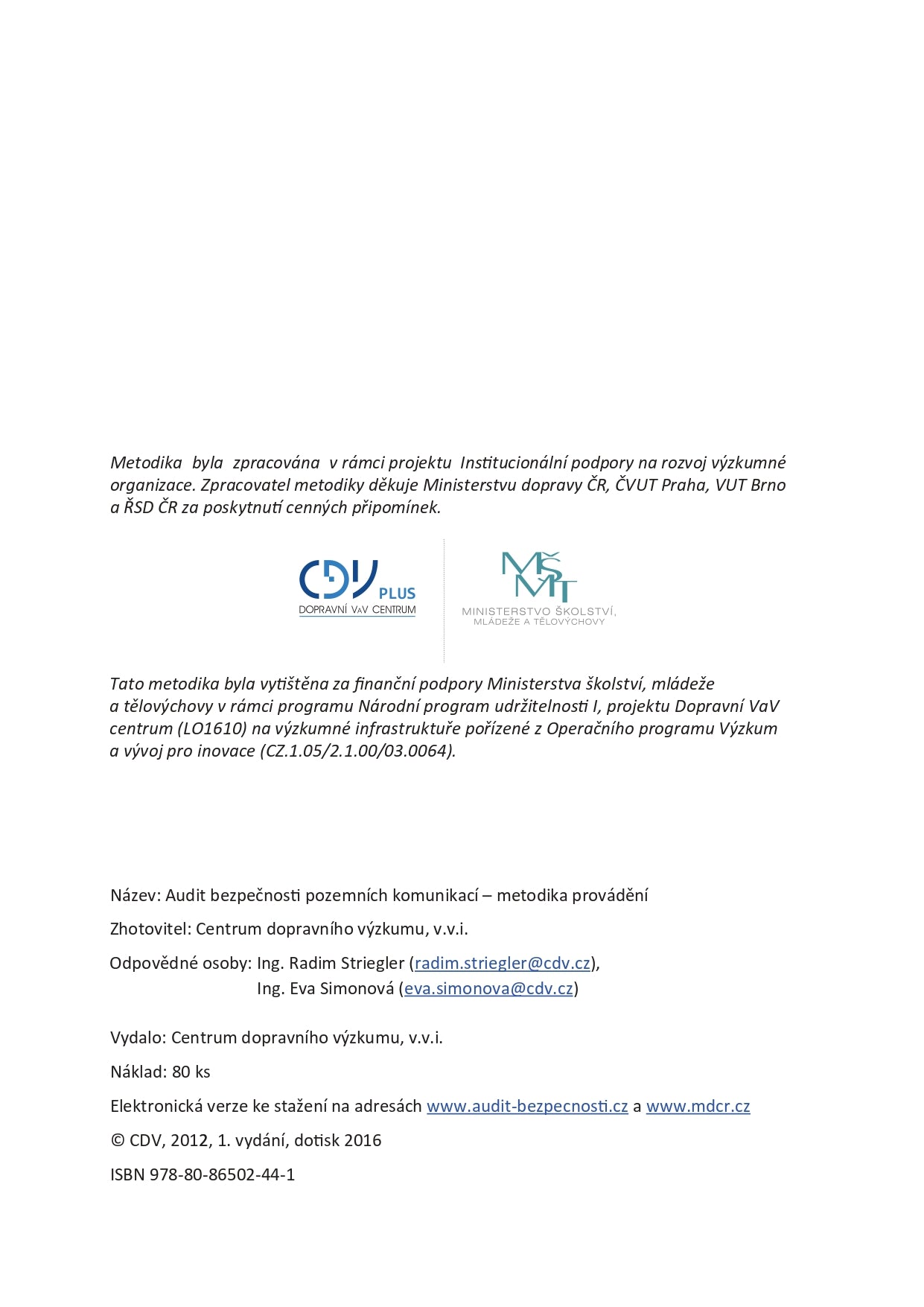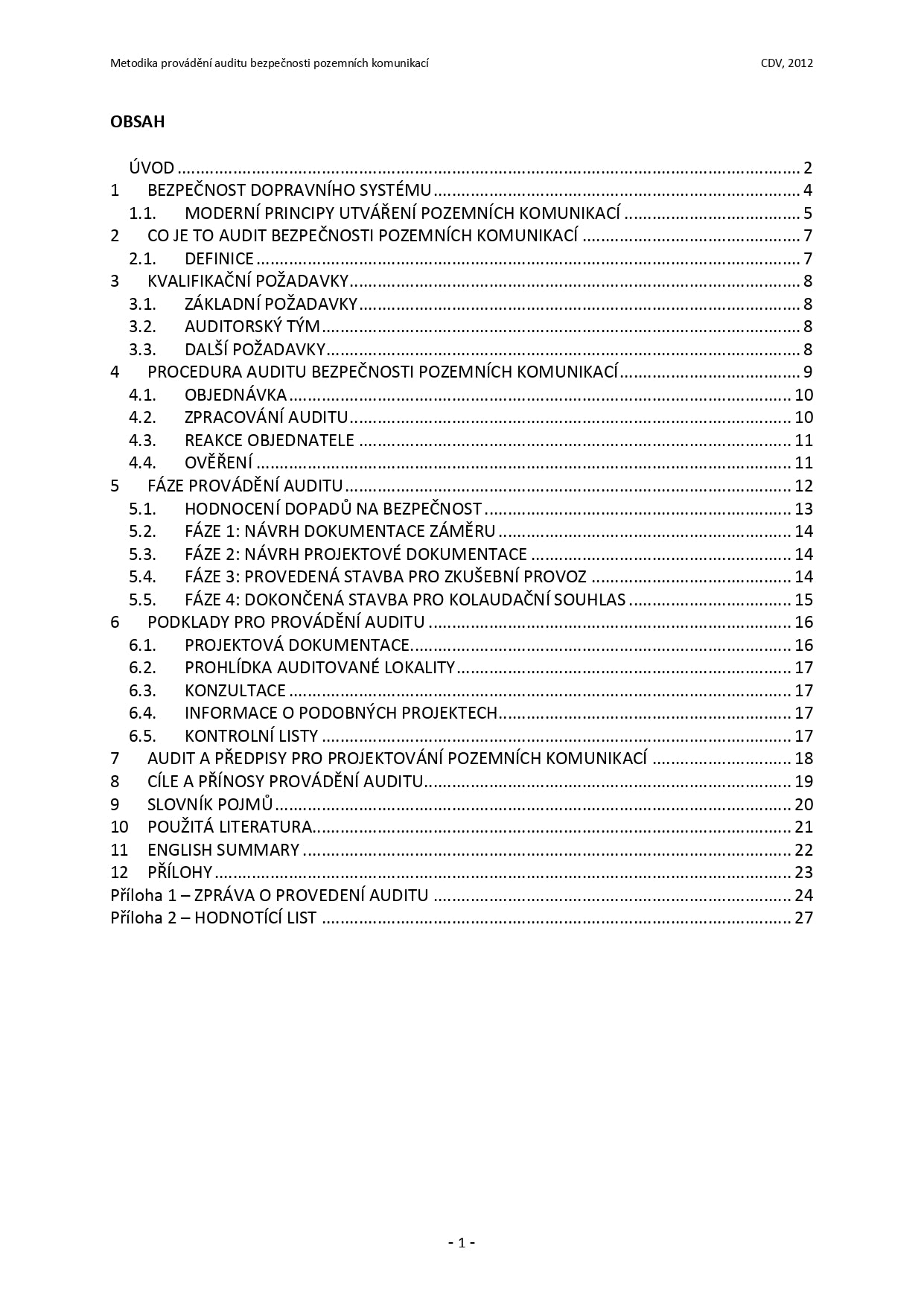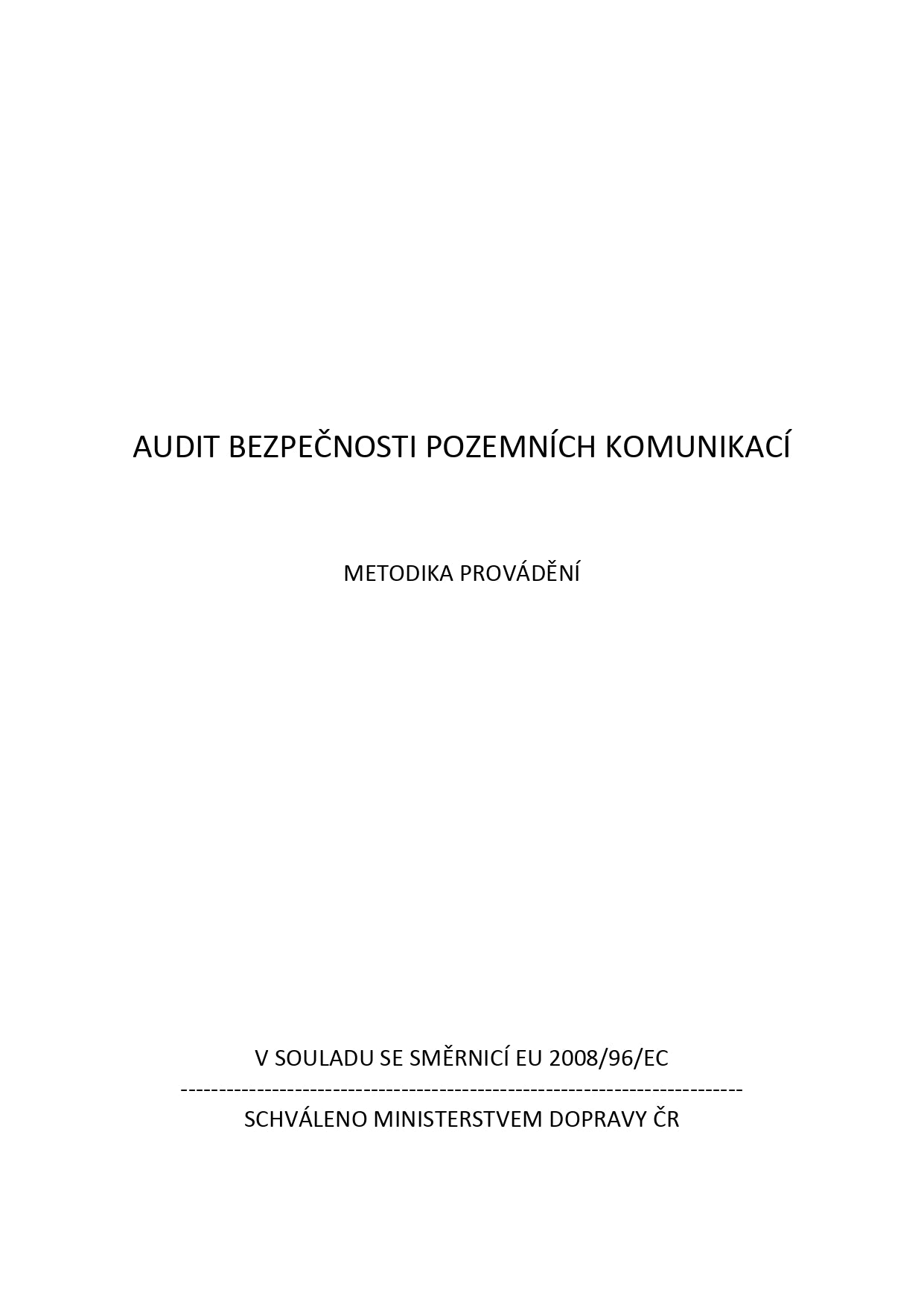 Tato metodika je vhodná pro provádění auditu bezpečnosti na projekty všech kategorií pozemních komunikací. Předpokládá, že principy provádění auditů u projektů pozemních komunikací nižších kategorií se neliší od auditů prováděných na pozemních komunikacích sítě TEN-T.