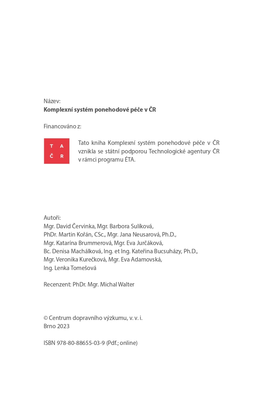 Tato kniha byla spolufinancována se státní podporou Technologické agentury ČR v rámci Programu ÉTA, v rámci řešení projektu TL05000424 Komplexní systém psychoogické ponehodové péče v ČR.