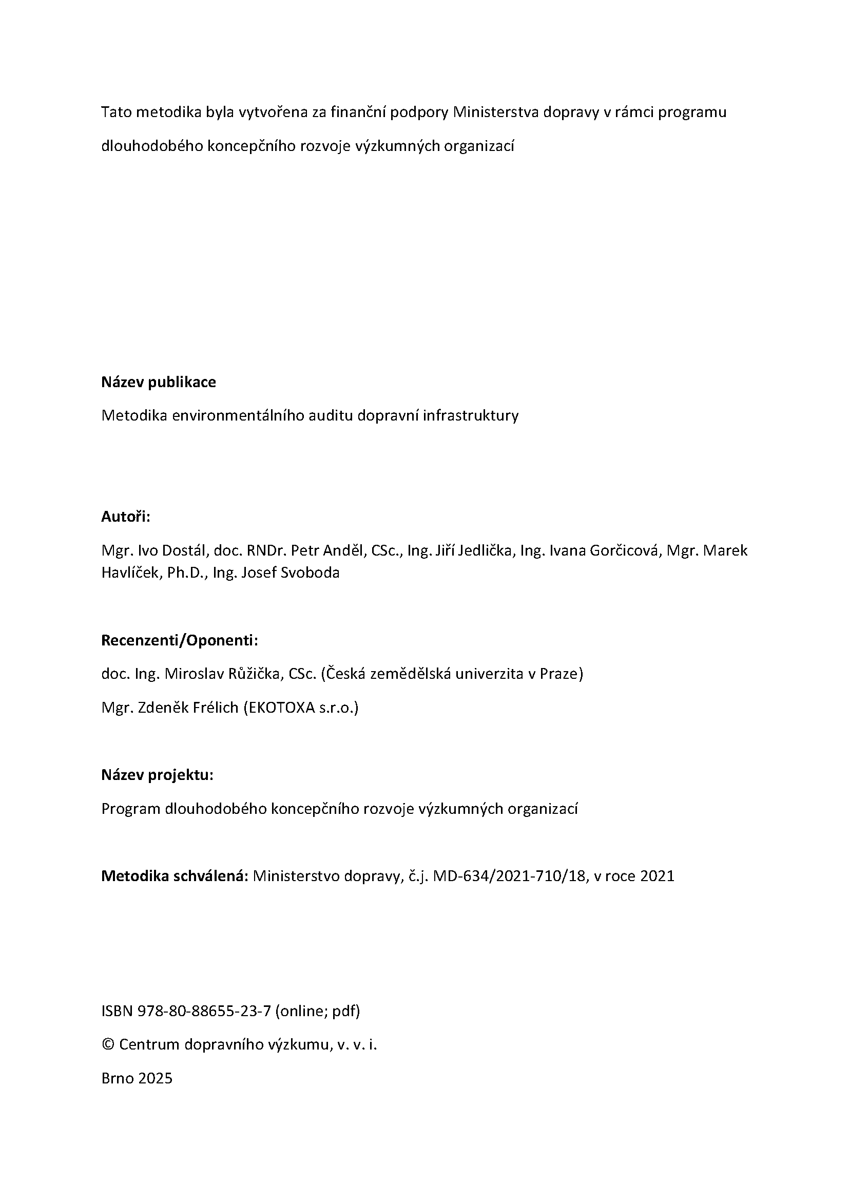 Tato metodika byla vytvořena za finanční podpory Ministerstva dopravy v rámci programu dlouhodobého koncepčního rozvoje výzkumných organizací.