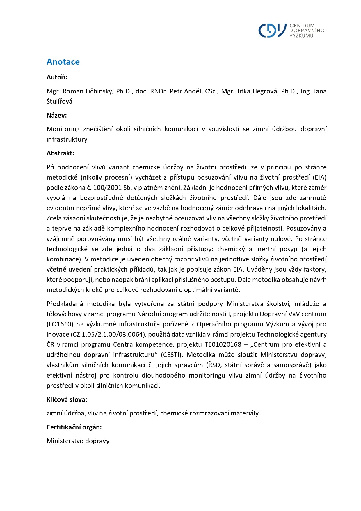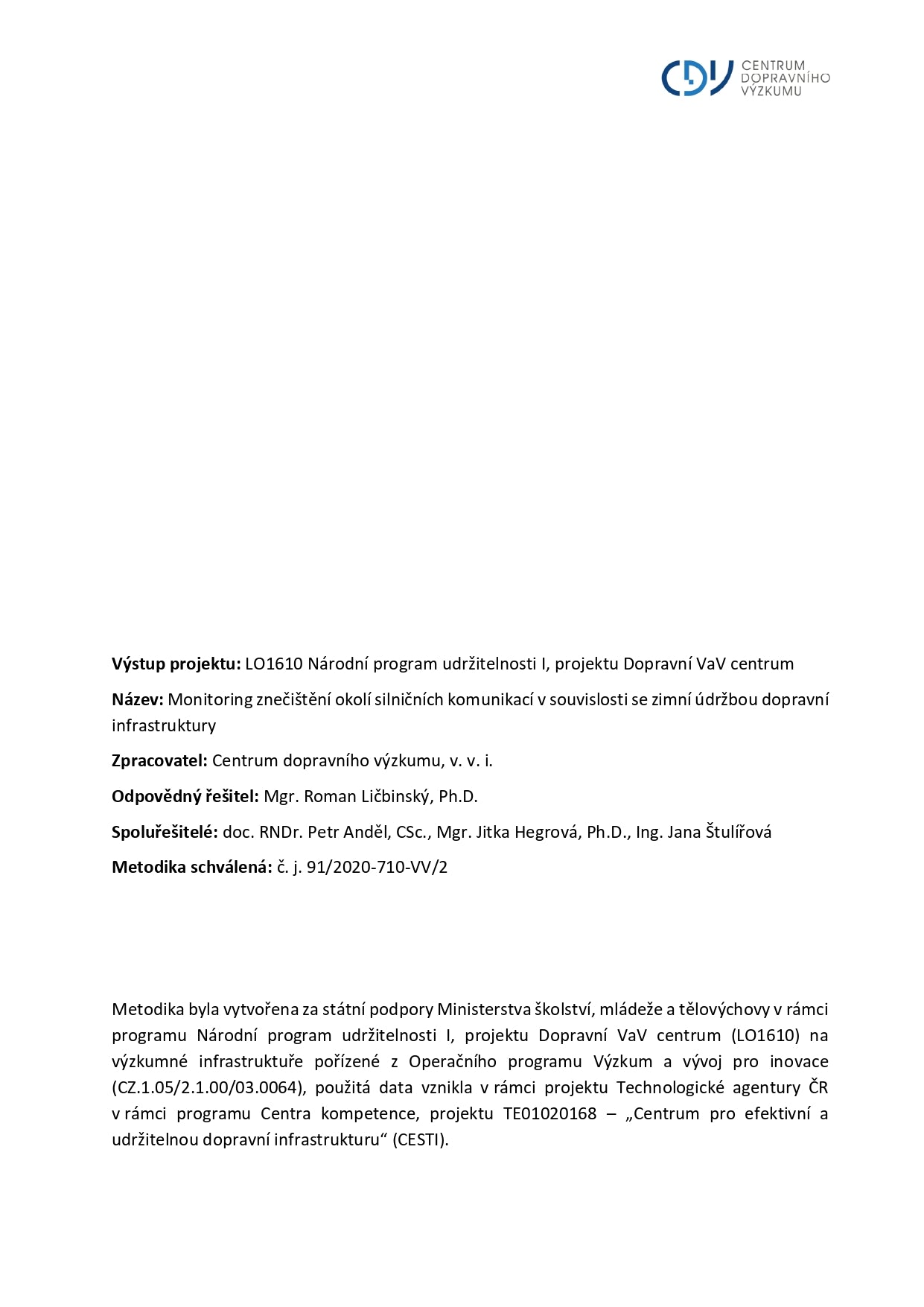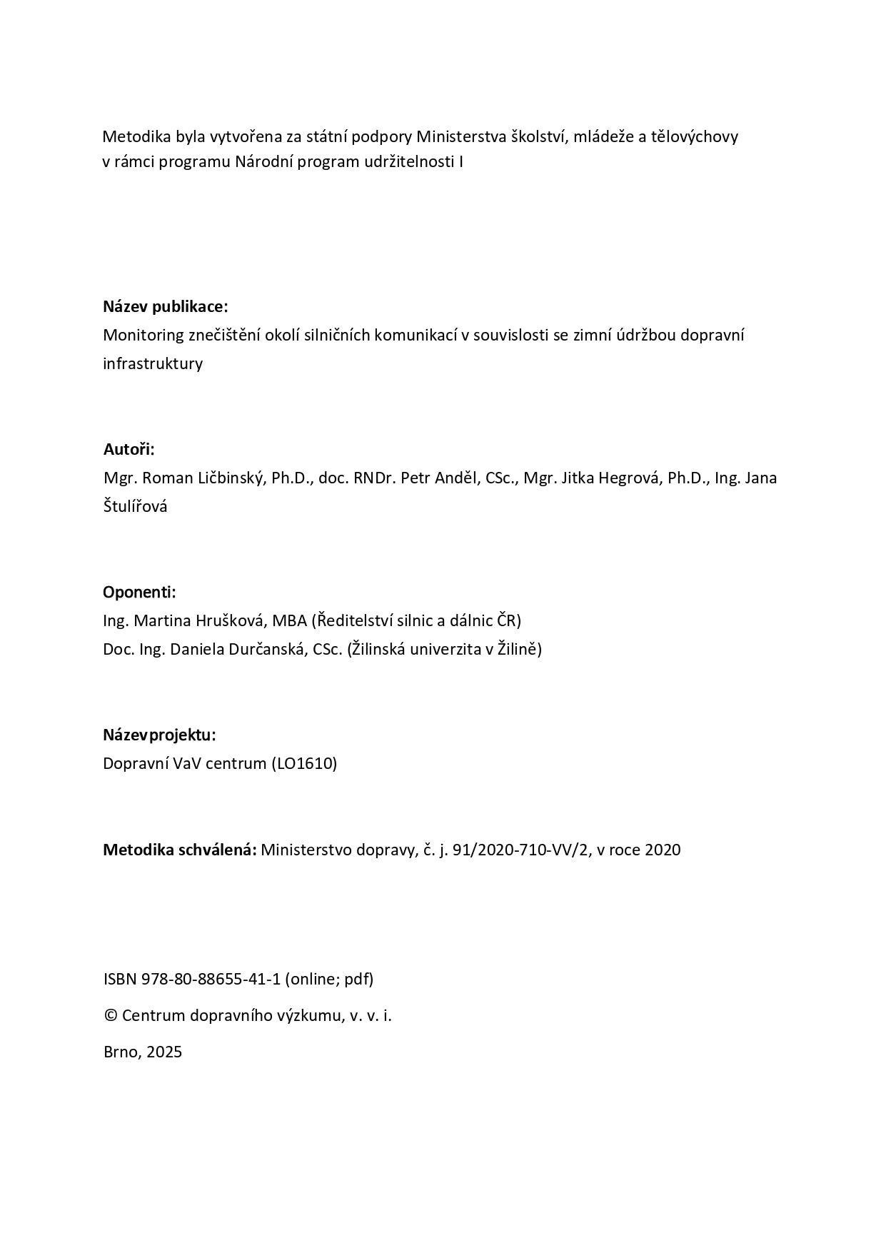 Monitoring znečištění okolí silničních komunikací v souvislosti se zimní údržbou dopravní infrastruktury