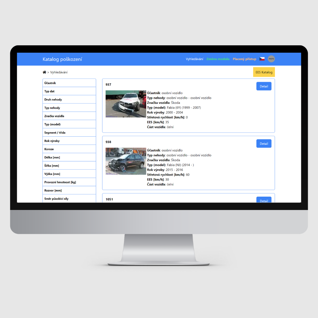 Součástí databáze jsou data z reálných dopravních nehod i nárazových zkoušek.